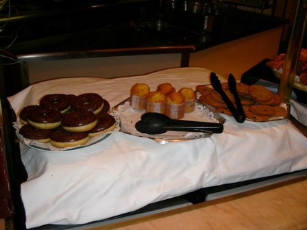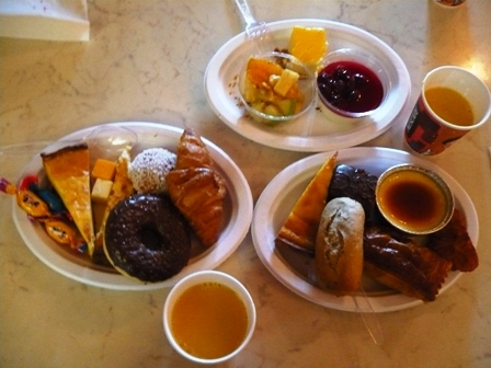 ビュッフェ形式のメニューは、スイーツメインかと思ってましたが、意外にケーキやムースなどは少なく、ハッシュドポテトやウィンナーに、ドーナツ、クロワッサンまで。