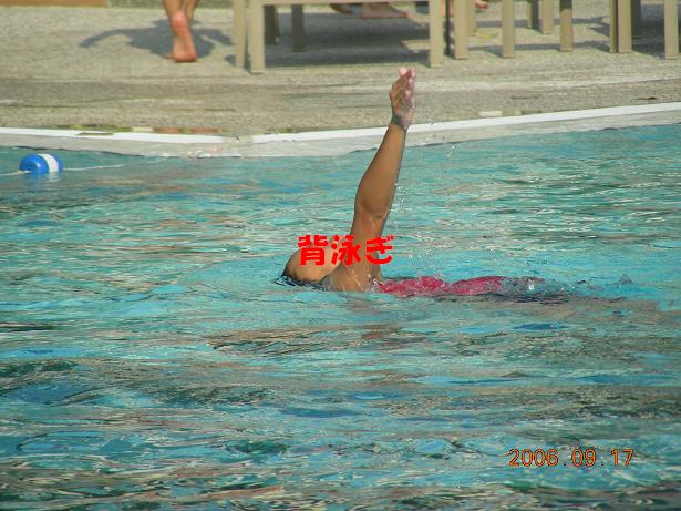 オッー! 泳げなかった ムスメがそれっぽく泳いでるー。 これも、この5月からスイミングを始めた成果ですな。 もちろん、まだまだダメですが、ちょい感激でした♪